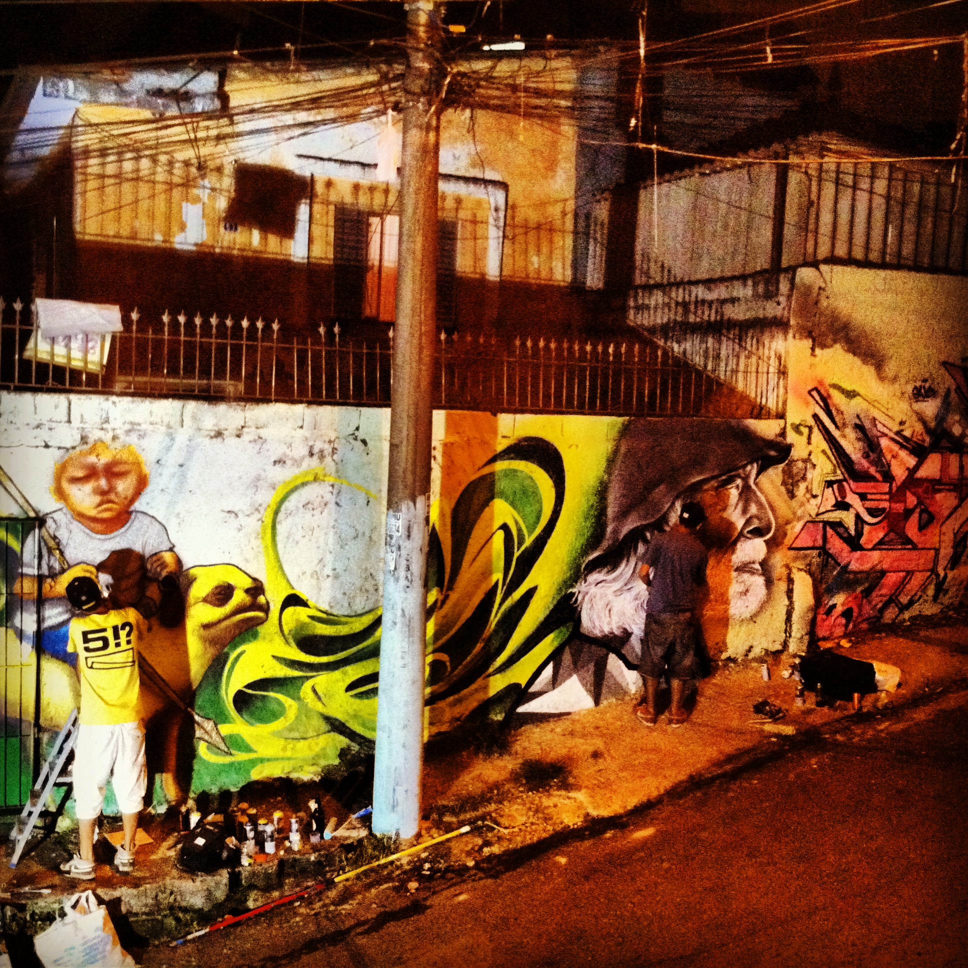 One of my favorite experiences was painting with the graffiti crew OPNI, who have created an arts and social project in a favela in the São Mateus neighborhood, where they are creating an amazing “outdoor gallery” of graffiti in which all the houses in the community are being painted by local and visiting artists.