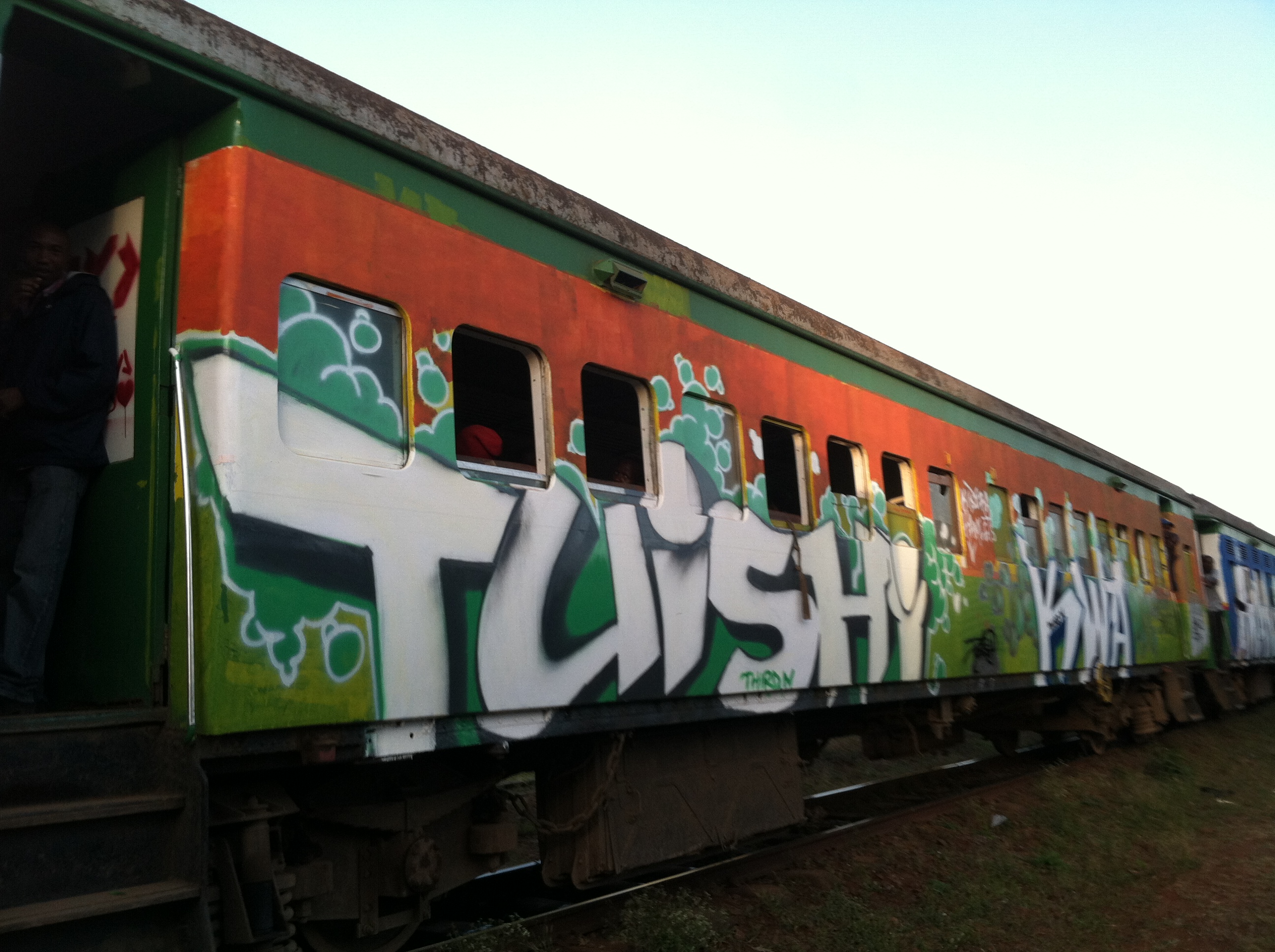 Nairobi graffiti artist Bankslave and Joel Bergner organized the Peace Train as part of the Kibera Walls for Peace project.
