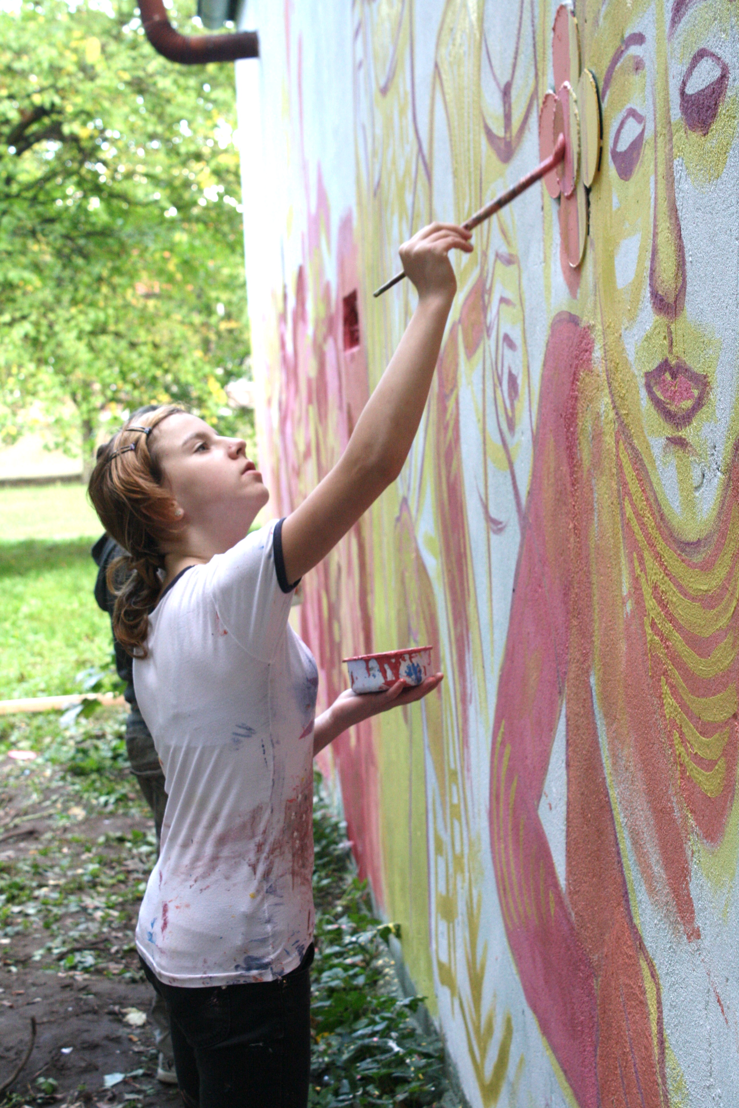 Gdansk, Poland 2011: “Between two Worlds” community project. Participants painted about their community in the background