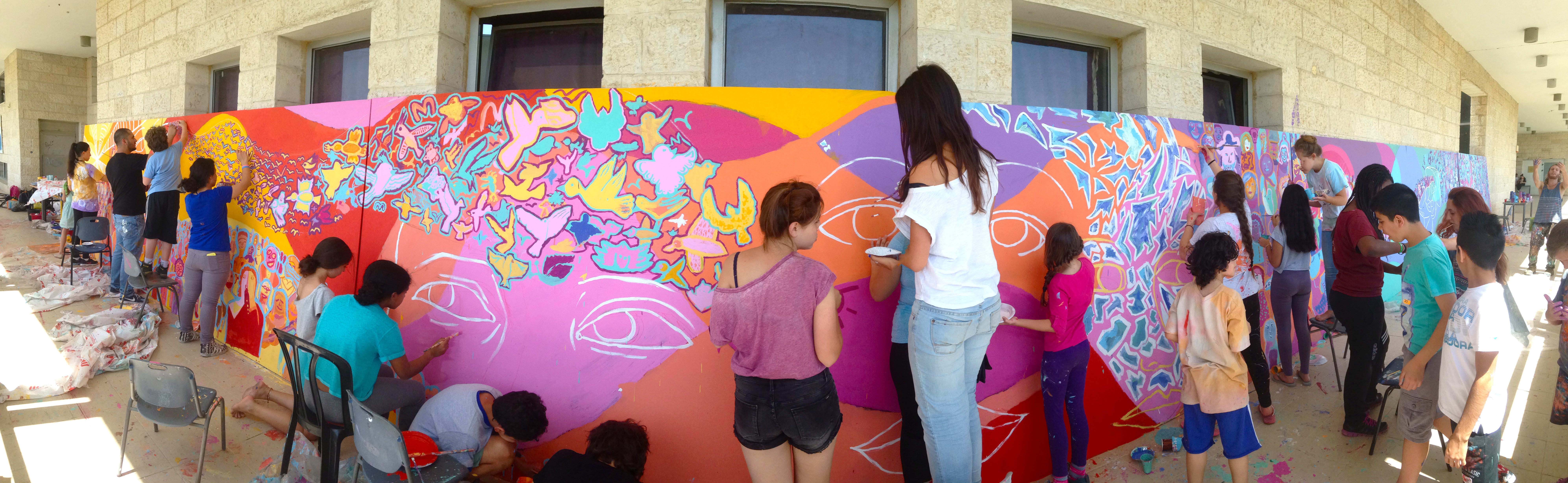 In the spring of 2015, Joel headed to the Middle East to join forces with fellow artist and educator Max Frieder to facilitate public arts-based projects that aimed to bring together youth from Jewish and Arab communities, which generally have very little interaction. They visited communities across Israel and the West Bank, where they learned from local residents how the conflict and tense political environment is being experienced by diverse communities and what people desire for the future of their region.