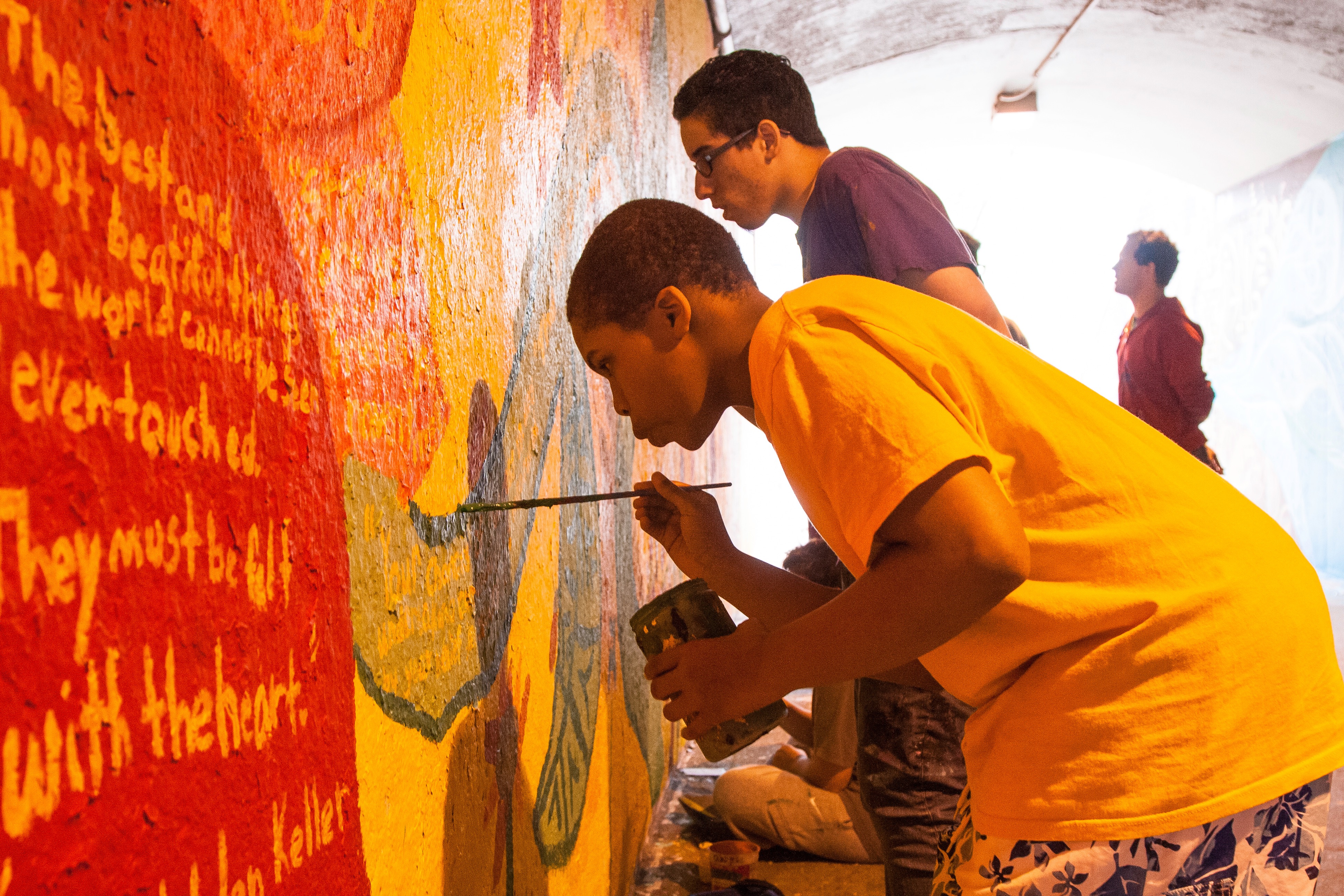 In our current era of division, our communities are in dire need of creative, unifying activities that celebrate our collective humanity and explore the issues affecting us with nuance and tolerance. I’ve had the opportunity to live and work in many communities across this vast nation, and I always find myself surprised and inspired by the people I meet and paint with along the way, from street artists to small children, inmates in correctional facilities to asylum seekers, all with a story to tell and hungry to envision a better future for themselves and their families.