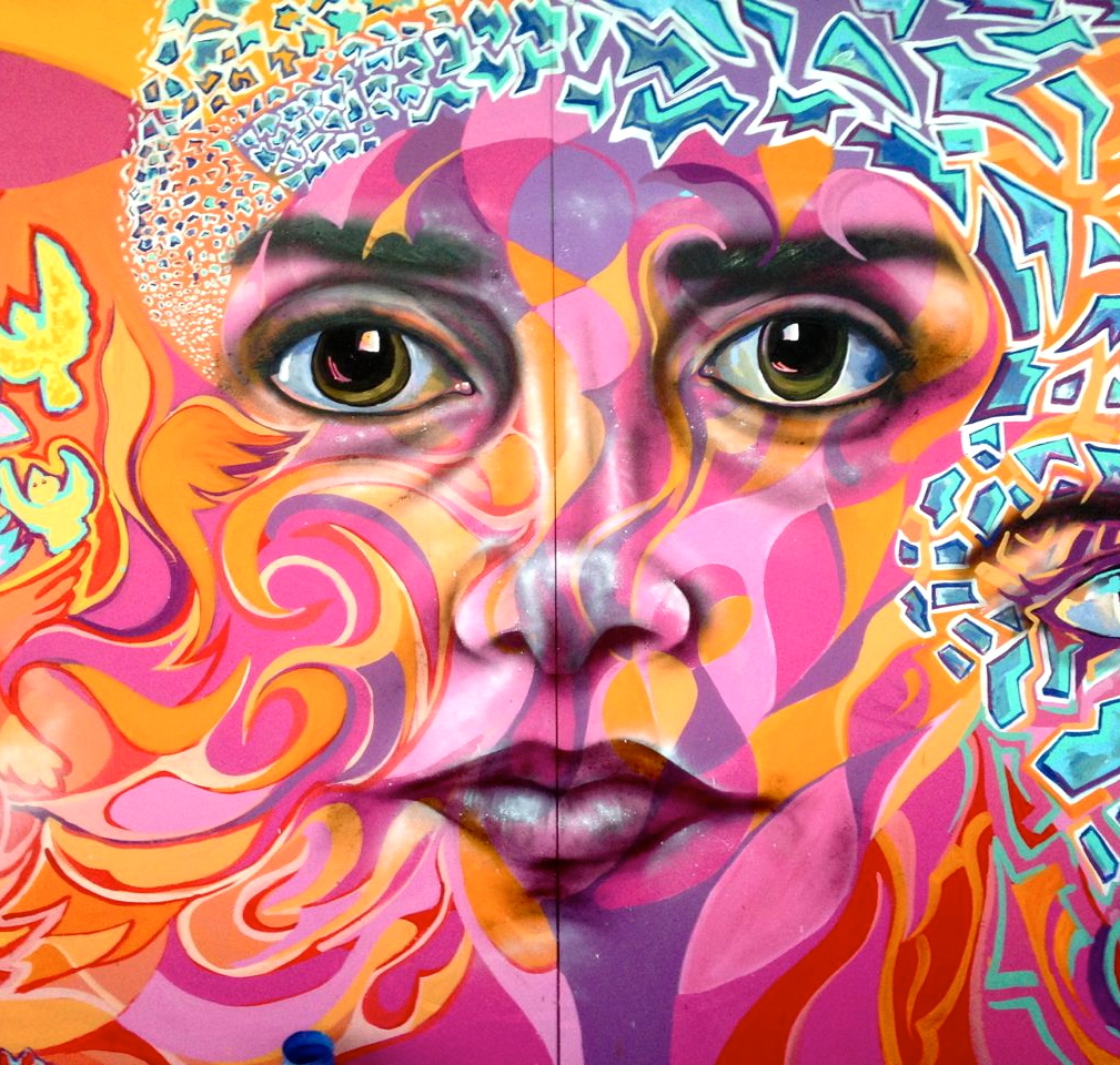 Using their ideas, I came up with a design that had several principal figures but that had room for each individual to express themselves through their poems, abstract designs, drawings and written messages, all inspired by the importance of second chances in life, of recognizing unrealized potential, and of the possibility of the rebirth. The students were excited about the project, especially as they have no art in their normal curriculum. It was amazing to watch them represent their own experiences and feelings on the wall, putting it out there for the world to see. One bright, energetic 16- year- old girl pointed to a heart she had painted that had been stitched up. “This is my symbol,” she said, and told me that her childhood had been rough and she had experienced a lot of heartache in her family, but that she had made it through and was feeling positive about her future.