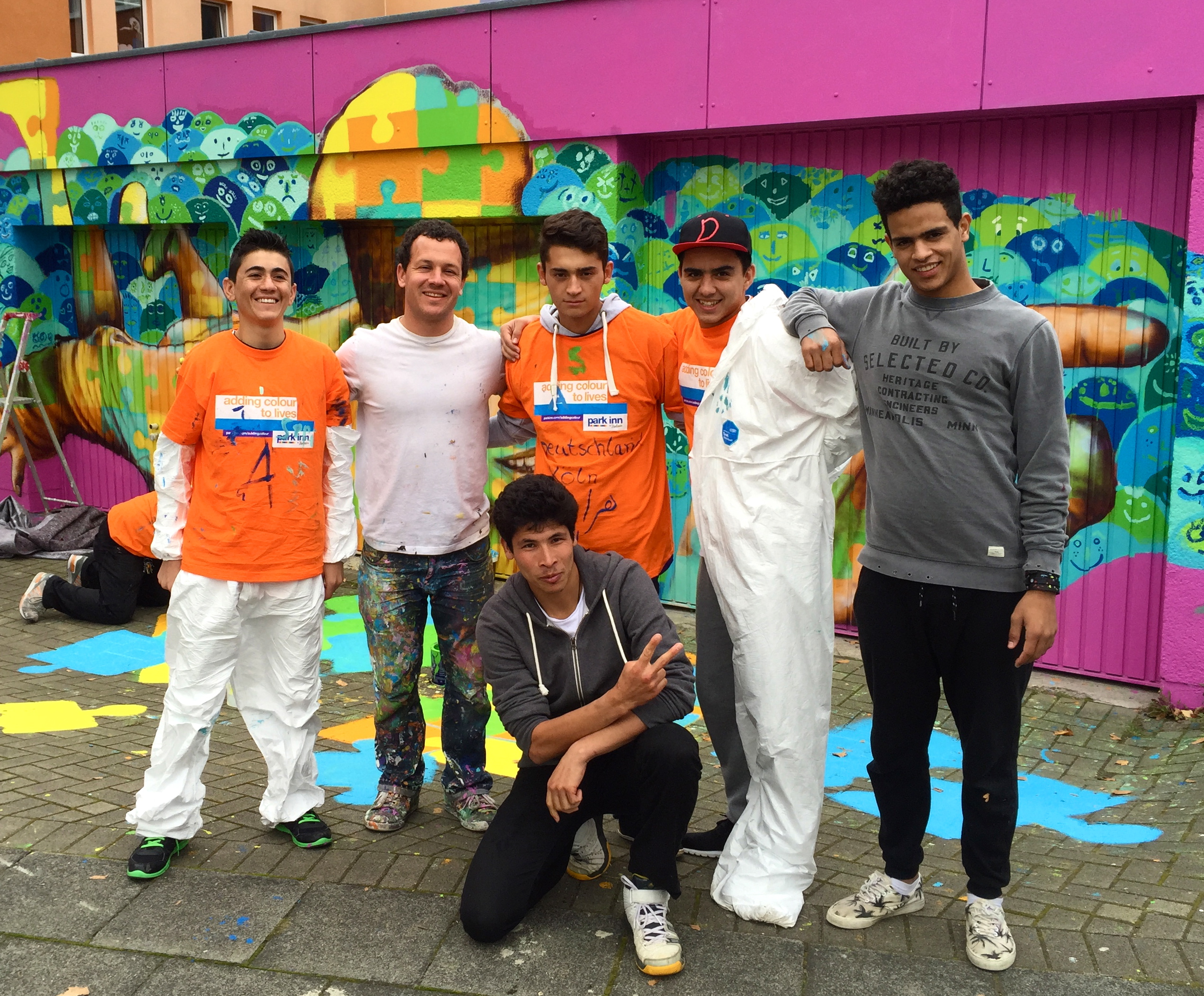 I arrived in Cologne, Germany in the midst of the refugee crisis that is engulfing Europe, with Germany at center stage of the quickly unfolding situation. The fourth installment of the #AddColourToLives tour was, therefore, very timely, as it explored the refugee experience and the importance of social inclusion in a diverse society. The project was a partnership between myself, the Cologne Park Inn hotel and the Anna-Stiftung center for children and teens who do not live with their families for a variety of reasons. Many of the teenagers who participated were refugees who had recently arrived in Germany- some only days ago- without any family. I tried to imagine arriving alone at such a young age in a strange land where no one spoke your language or understood your culture. They had experienced great hardships and trauma in the countries they came from in the Middle East, Central Asia and Africa, which they now had to attempt to recover from while dealing with the painful separation from their loved ones.
